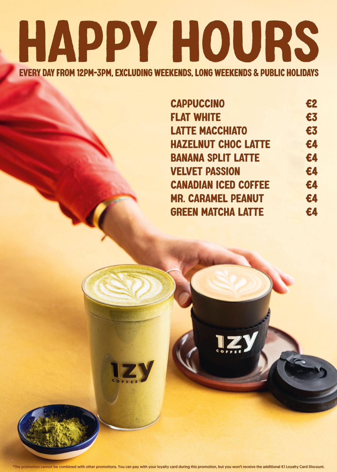 Load €50 or more onto you IzyCoffee loyalty card and save €1 on every coffee!